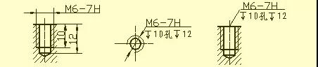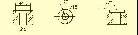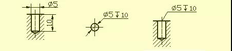 用鉆頭鉆出的盲孔,在底部有一個120°的錐角,鉆孔深度指的是圓柱部分的深度,不包括錐坑。在階梯形鉆孔的過渡處,也存在錐角120°圓臺,其畫法及尺寸注法。
